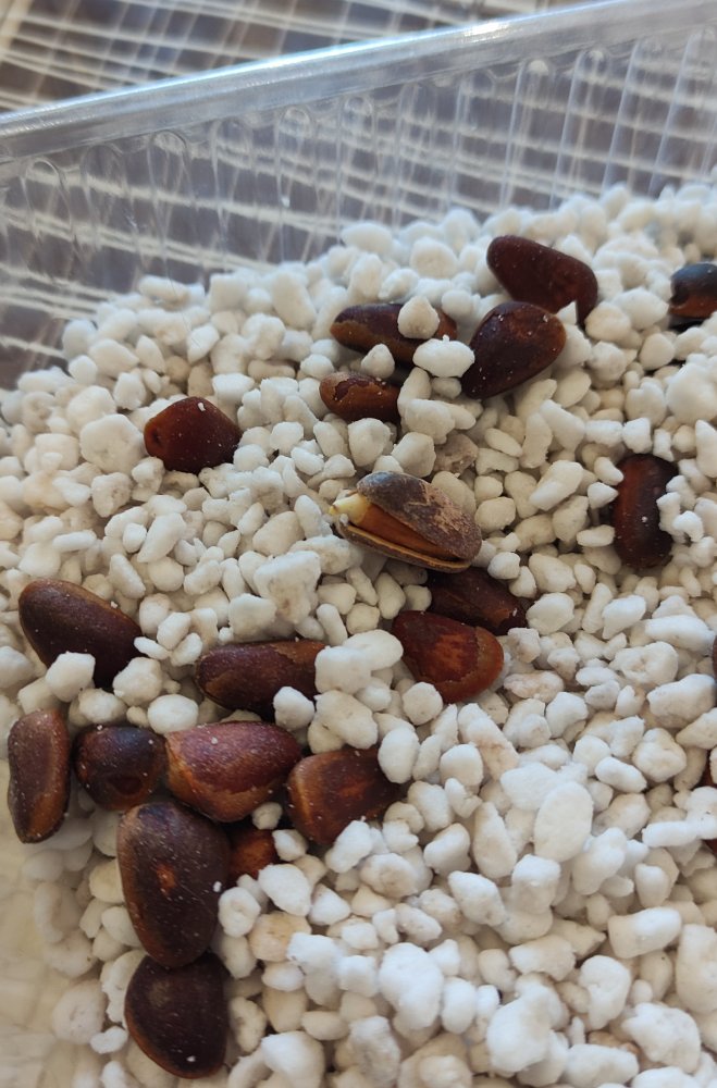 После стратификации стали лопаться орешки (семена большого и красивого растения - корейского кедра).