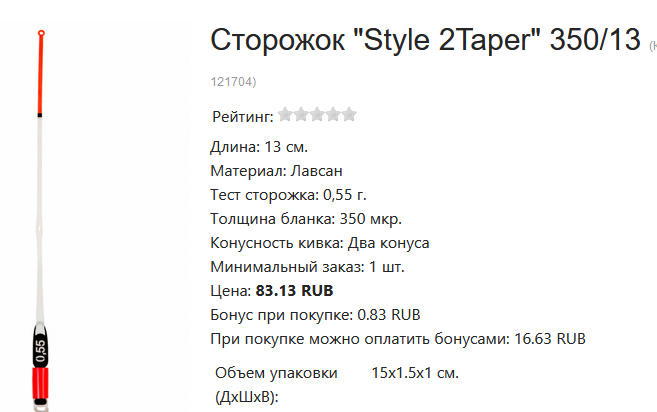 Больше всех понравились вот такие Style2taper 13 см (только конкретно 350 мкр. под вес 0.55 г) нормального строя для БМ ... их и поставил на пару удочек. Остальные тоже неплохо, но показались либо чересчур "дубинисто-фастовые" либо "лапшеватые". Чисто ИМХО, но если кто будет затариваться ко льду посмотрите ... вот такой: