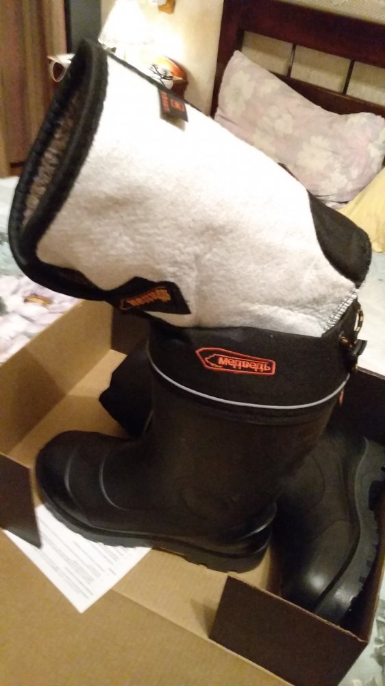 Так, ну я с новыми сапогами, качество на уровне, всё подогнано, на ноге очень приятно сидят, специально брал шипованные, с моим подломанным хребтом думаю будет самое то... Полевые испытания, естественно, откладываются до становления твердой воды, но пока всё нравицца...! Если кому интересно по размерам, брал на свой 42-ой, 44-ый сапог, с теплым термо носком будет самый раз...