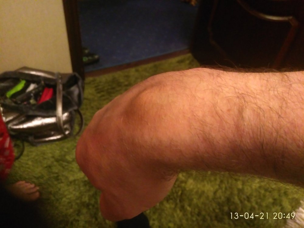 @Хирург Саш, вот это, видимо, должно быть тебе знакомо. Появилось пару лет назад, сперва не беспокоило, но, за это время подросло, стало болеть и сковывать движение кисти. К врачу идти придется, но твое мнение очень важно. Когда кисть не согнута, ничего не видно: Но, стОит согнуть, вот чего вылезает: Что это за хрень и что с ней делать? Заранее спасибо!
