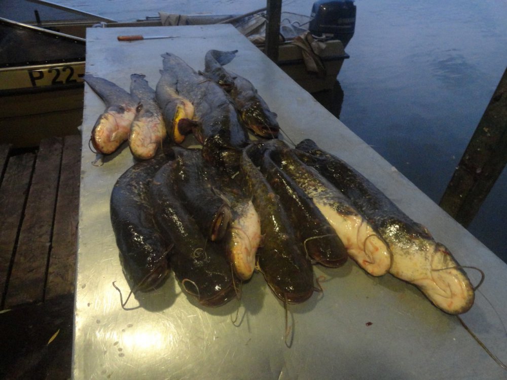 Жара потихоньку начинает отпускать. По прогнозам - к концу недели температура обещает быть не выше +32. После обеда выехали на рыбалку. Выловили крупного сома на 13 кг. Достался он нелегко, но в этом и вся прелесть от улова. Наши рыбаки были очень рады такому замечательному трофею!