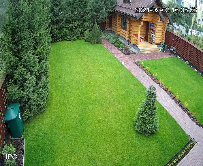 Полоски на газоне, потому как его только что скосили, завтра уже почти не видно будет, а у меня не кошеный. Фото онлайн с камер видео наблюдения.