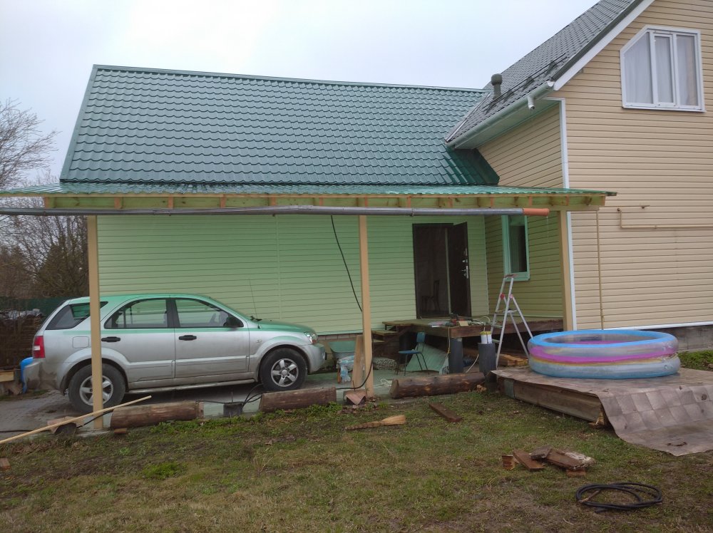Это прошлогоднее весеннее фото, сейчас навес закрыт фасадной сеткой и снега нет на парковке совсем.