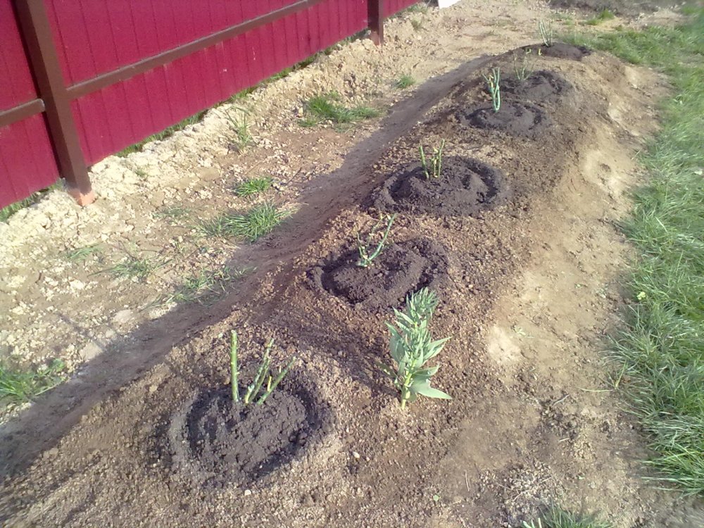 Вот он один торчит у будущих роз. Такие кустики у меня каждый год вырастали, но не цвели. Но кротов отпугивали.