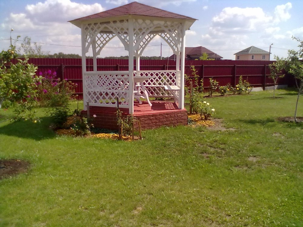 Олег, делай, как тебе нравится, никого, кроме своих близких, не слушай Мы, когда строились, сделали одним цветом крыши дома и беседки, ну и забор