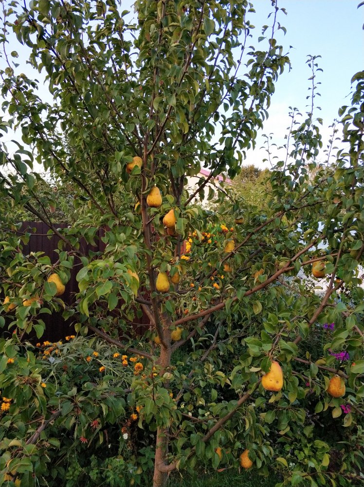 Сажал в 2017 году три груши-"Чижовская", "Лада" и "памяти Яковлева". Уже были груши, но не по многу, в этом году " Чижовская" ломится от плодов, всю подпорками утыкал, остальные по не многу. Яблоки первый год дали урожай, понравилось "Конфетное" и "Народное".