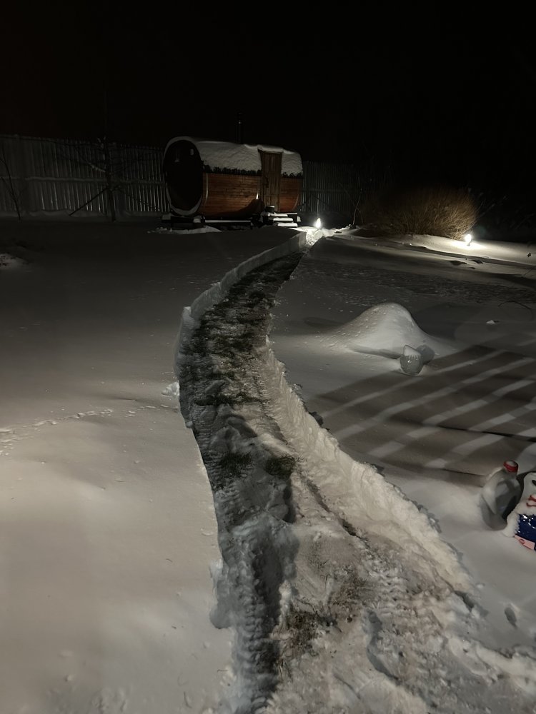 Сегодня, после рыбалки, тоже заскочили на дачу. Немного почистил, чтобы потом не смерзлось, потом в доме давление в системе упало и котел остановился, а жена ещё не хотела в дом заходить Добавили "жижи" в систему, заработало, потом начал крыльцо ото льда чистить. Слива нет (фасад ещё не делали), капает прям на крыльцо и намерзает. Кувалдой колотил, упрел, как мышь, морда вся от пота текла, но отковырял. Дверь низко, потом ещё намерзнет, не откроешь. Как говориться, не было печали, купила баба порося (построили дачу) Нет, если бы там жить постоянно, то всё своевременно бы делалось, а так, раз в неделю