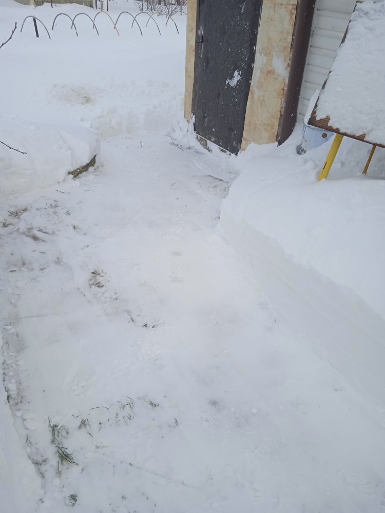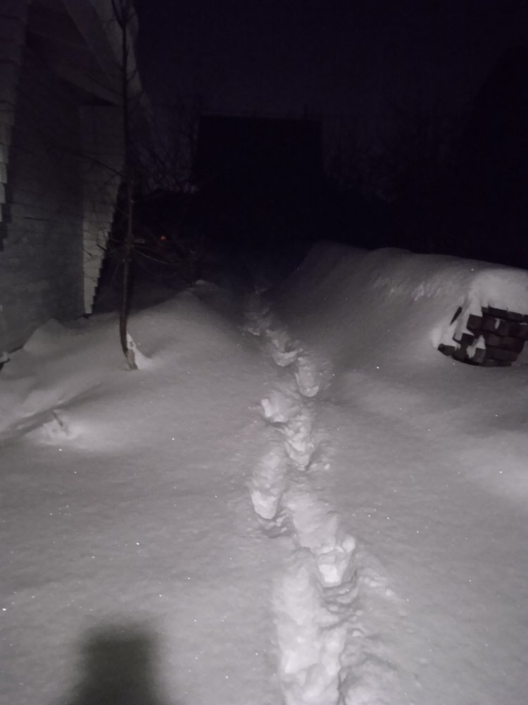 За ночь опять подвалило, где 2 см, а где и 10! Одну дорожку замело насмерть.. Пока двигал скребком, вспотел и взмерз! Щас отогреюсь и пойду дочищать трактОром. Ветер заколебал... Ещё проблемы создаёт большой трактор - чистящий дорогу. После него остаётся снеговой вал на моей площадке перед воротами, который не так просто вычистить, ибо кидать приходится через дорогу. Когда снег сухой, нормально, а вот после оттепели приходится совковой лопатой, здоровые твёрдые комки мой трактОр не берёт..