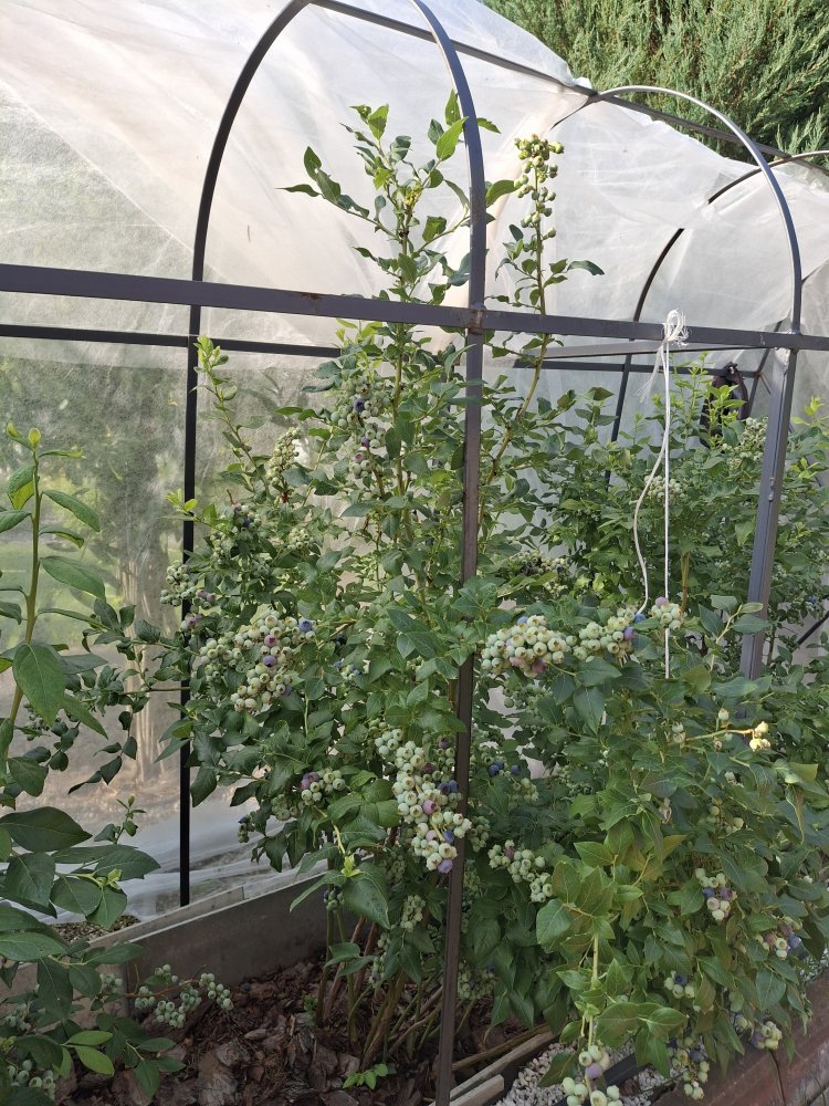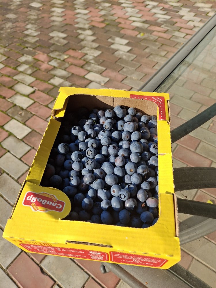 У нас голубики более 10 кустов.Плодоносит отлично,но при соблюдении ряда правил при посадке и уходе. Я копал траншею шириной 60-70см и глубиной 60-70см,длина зависит от количества кустов-между ними 100-120см в зависимости от сорта.Стенки траншеи укреплял плоским шифером с распорками.Теперь самое главное-голубика плодоносит только в кислом грунте. В лесном хвойнике собирали опавшую подстилку вместе с корой,мешал 1:1 с покупным кислым верховым торфом и засыпал в траншею.Не зависимо от сорта я укрываю на зиму и во время созревания (от птиц) по спецкаркасу. Полив "кислый"-регулярно добавляем лимонную кислоту.Ни какой "химией" не обрабатываю- не требует. Некоторые ягоды размером с вишню.