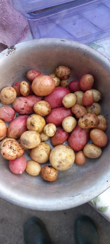 Сегодня выкопал ещё 2 ведра, сразу вымыл и просушиваю. Чтобы видеть, какая на хранение в погреб, какая сразу на еду, а какая порченая гнилая и резаная.