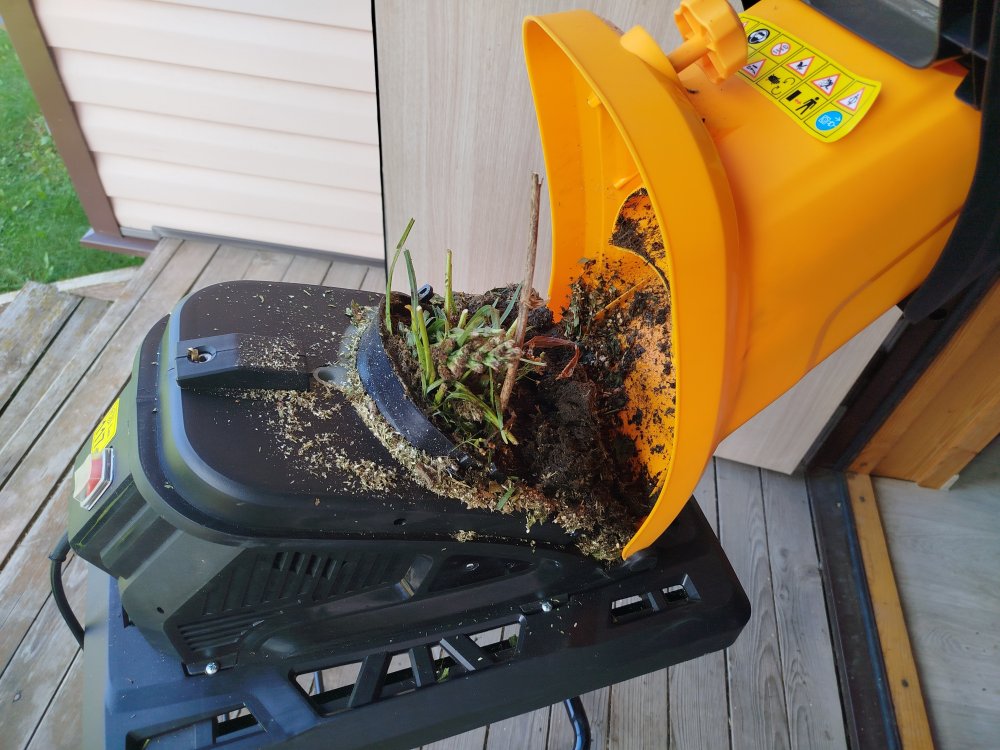 Измельчитель в работе понравился, толкатель только вытаскивался тяжело - очень узкая прорезь. Приспособиться надо и не торопиться засовывать сразу много веток:D. Работает быстро - час срезала - 5 минут измельчала. Начала с пионов, потом лилии, флоксы, лиатрис. Несколько клумб убрала. И надо было остановиться. Бак-то уже наполнился (договорилась с мужем, что он сам выбросит в компост и измельчитель почистит). А я - домой побыстрее уеду:p