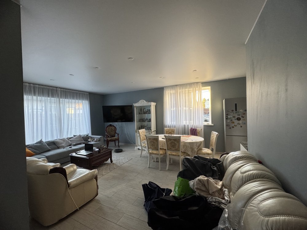 2 этажа по 100 м2, 5 спален, гостиная, кухня 20 м2, 2 с/у, топочная, котел 36 кВт, теплые полы на 1 этаже, все наружные стены с двойным утеплением.