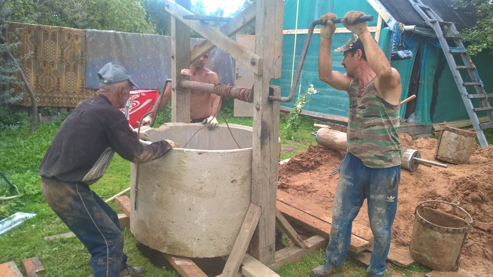 Они прошли глину, уже в водоносном песке, воды 50 см - это верховка из 4 кольца. Нужен хороший насос и копнуть еще на метр. Нижние 3 кольца загибаются в сторону скважины