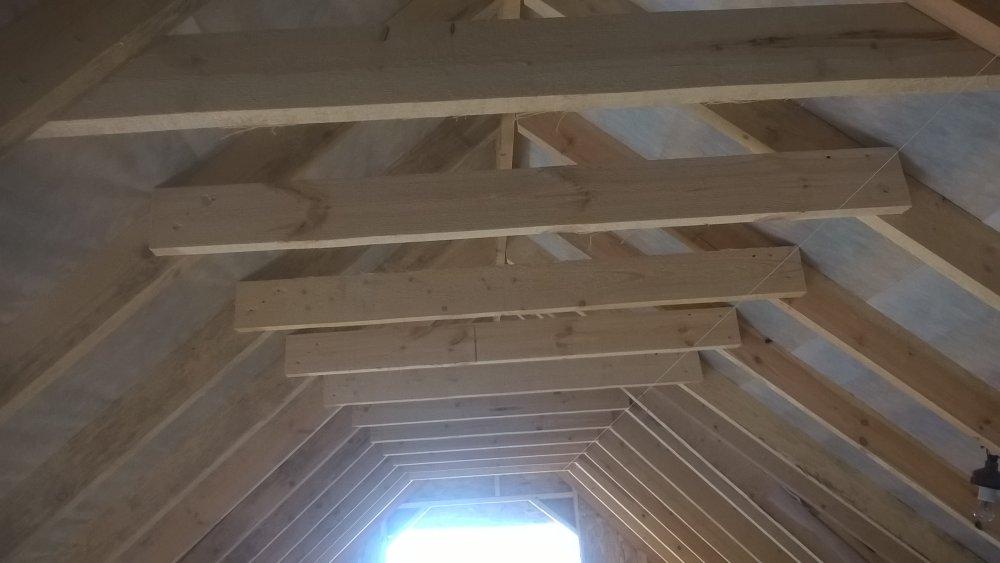 @DukMario64, По ОСП Серега дело говорит. Два по 12 мм, это какая то рессора. И вообще, старайся без него обходиться, доска экологичнее. Для одноэтажника я бы и снаружи не ставил, ограничился грамотными укосинами(сэкономишь), плюс вентфасад из крашеной ИБ, но краска, сука, дорогая... Но зато не будет проблем с вентиляцией ваты. Ондулин фтопку.