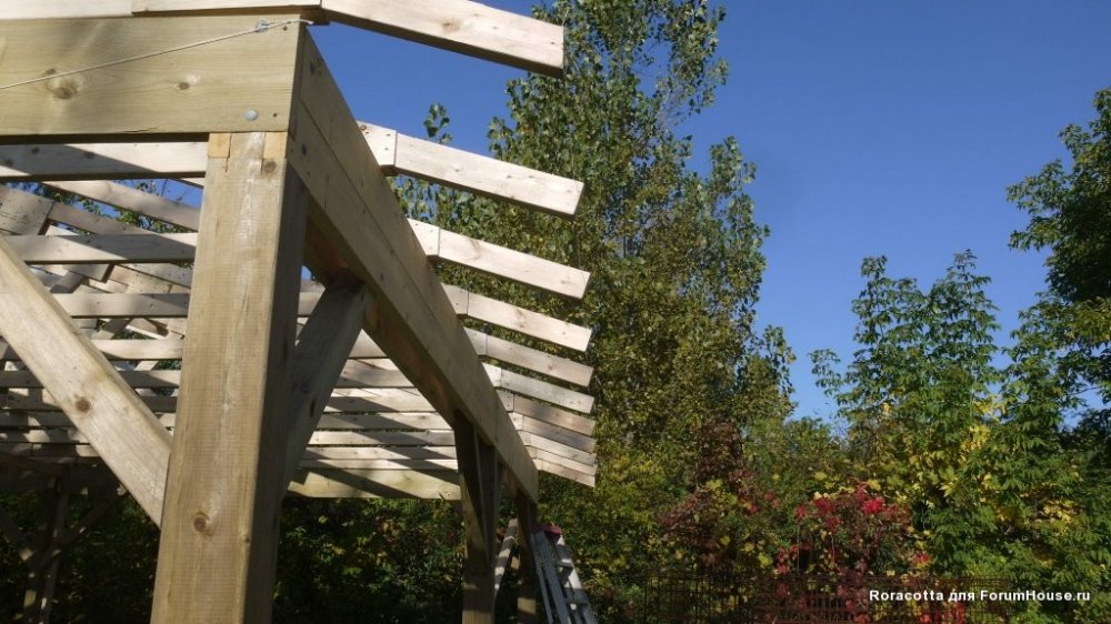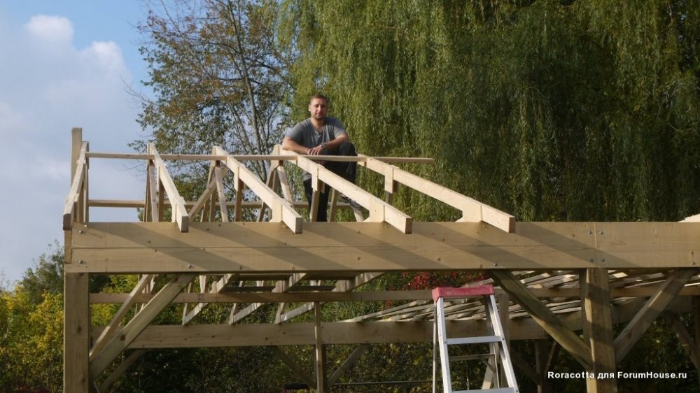 Как вариант, поставить коня из лвл бруса(сечение надо считать). Но пока его на верх поднимешь, другого коня родишь, зеленого.