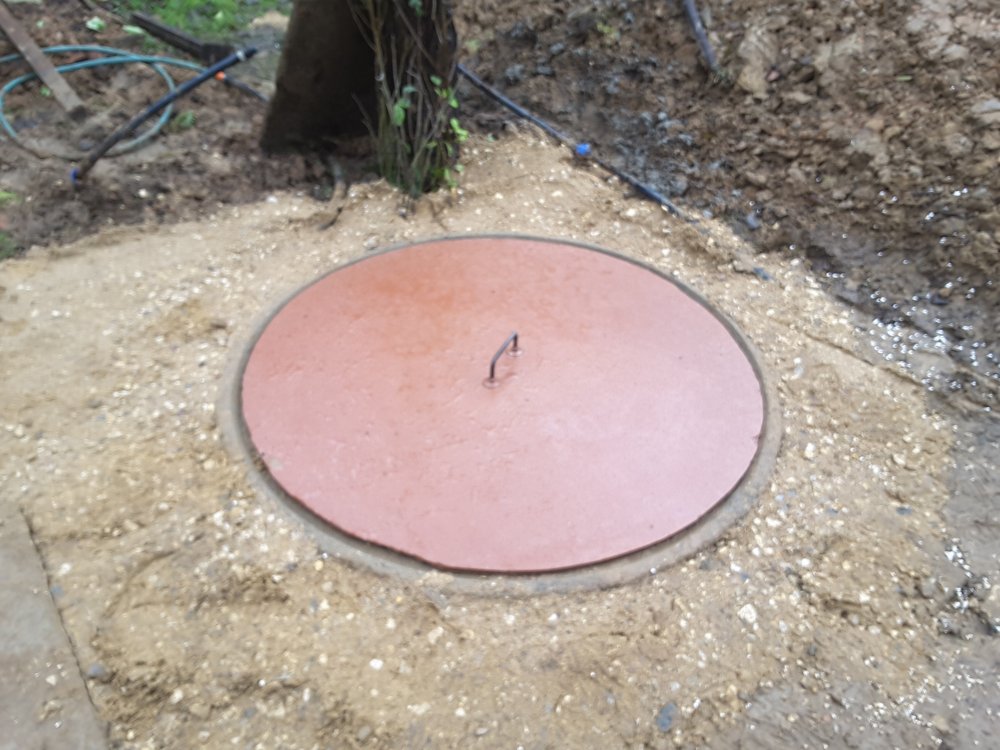 Простой кессон. В нем стоит бак Г.А., реле включения насоса, да в общем то и все. Две крышки, одна сверху вторая примерно на 40см ниже. Ничего не утеплял, ничего не мерзнет. Сверху, на кессоне, имитация большого гранитного бульника.