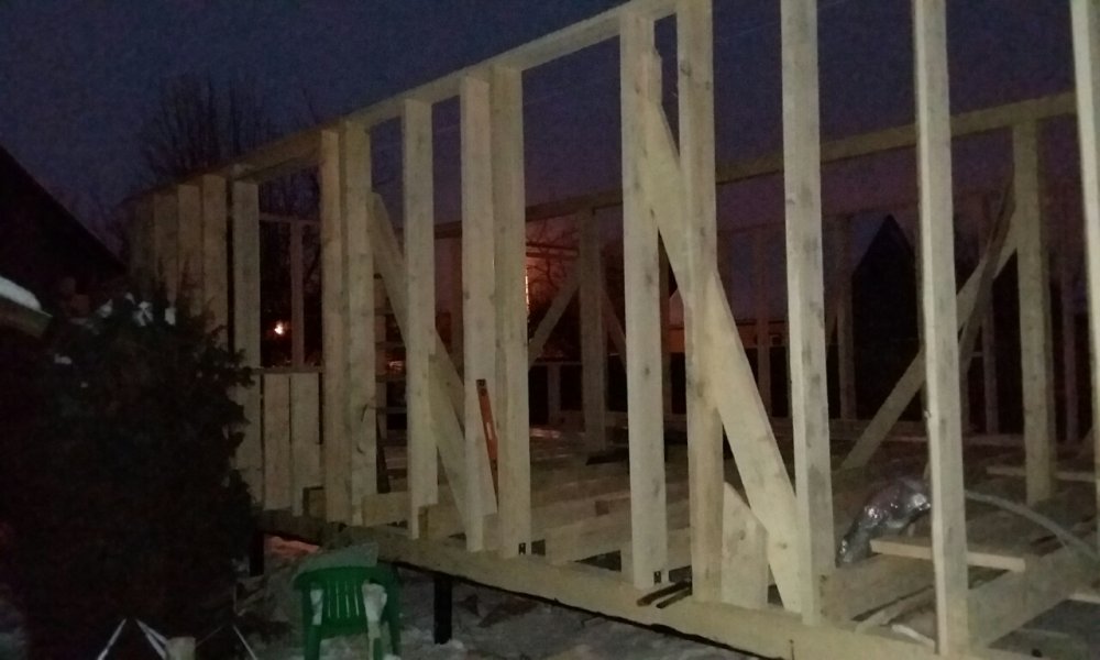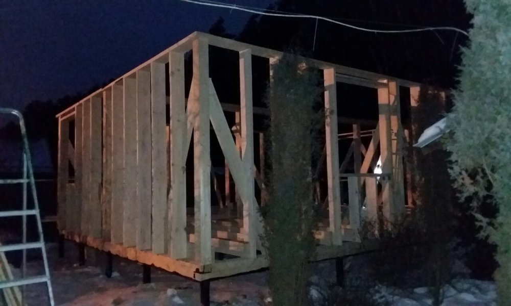 Что успел, сфотал... в 17ч приехал(дела, леруа и т.д.) и тутошние проблемки затянули до темноты - пару кубов разных на этапе каркаса придеЦа докупать. Завтра привезут кировские. Толковые ребята... - Хоть фуру без предоплаты загонят..:good::)