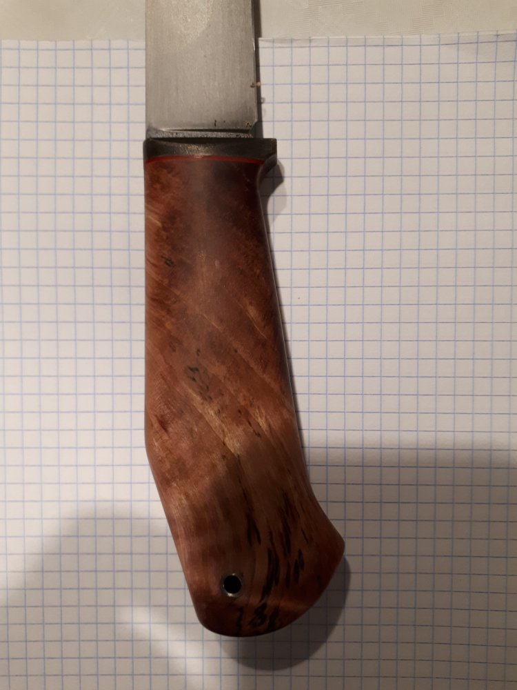 @And, непрокатит,эта ручка у тебя на клинке в 30 мм где то,полуфилейник 22-24(попробуй на своей прорисовать линию на 6-8 мм заузив),и толщина ручек примерно 16 мм(потому как сама заготовка не толстая изначально,да и ножу более массивная не к лицу),если сделать твоей формы и размера,будет ..уродец.. могу попробовать сваять близкую по форме и духу,но более изящную.Правда не знаю как нож при этом будет выглядеть. Так то я понимаю что каждый тяготеет к чему то своему,но могу сказать ,что ручки у меня всегда очень эргономичные.В руке не вертучие ,и работать можно ножом в любом хвате .