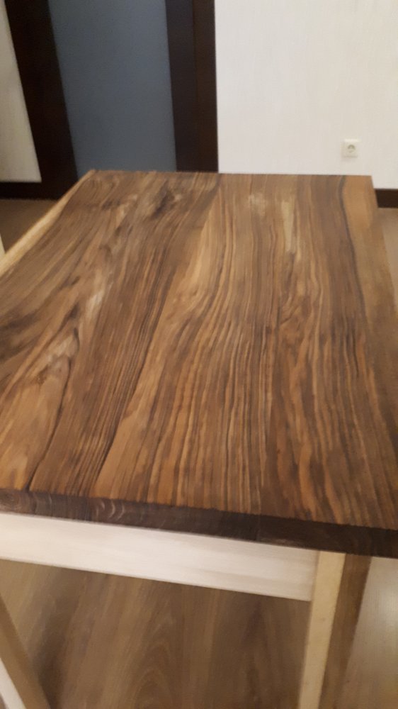 Года три назад привез из азербаджана две ореховые доски. И вот они дождались... ореховобуковый столик. Теперь поднимать ворс и вышлифовывать. Потом маслом Столешница вот такая должна получиться
