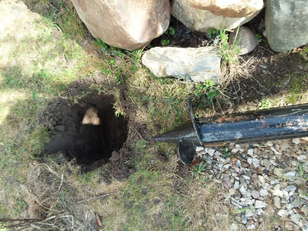 Заложили с сыном "фундамент" под перголу.. 1,65-70 примерно закрутили. Завтра обрежу и оголовки приварю. Если погода позволит.