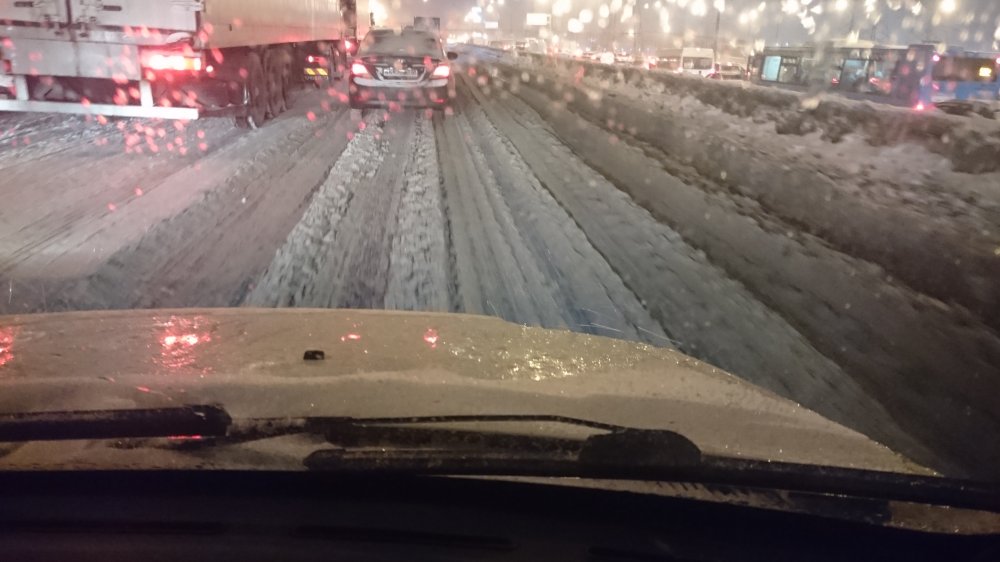 МКАД.60 км почти 4 часа.На призыв не выезжать в снегопад откликнулись только снегоуборщики
