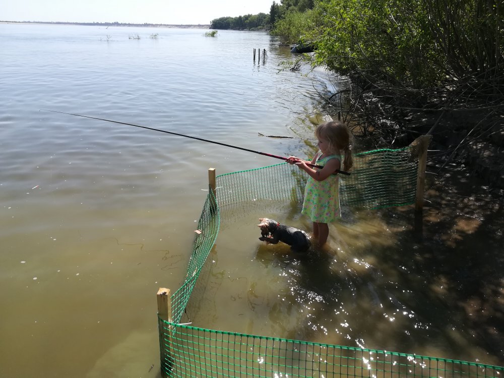 Еще один сезон на НВ завершен. Енотаевский район, окрестности Никольского. Отдохнули хорошо. Вывез всю семью, все довольны, собачка особенно! Общий вывод: в Волге рыба есть и много. И это очень радует! Как всегда не хватило нескольких дней, кода понял где и как ловить. Дочка 3 года начала карьеру рыбачки. Ловила с мамой на поплавочку с берега плотвичку и красноперку. Довольная! Ловил сазана и только его! Для себя открыл новый поисковый активный способ ловли сазана. Очень увлекательно и динамично, хоть и рыбка в целом маленькая: 1.5- 2.6 кг. Однако был и на 5800 и на 5700 , караси до кила, лещ до 1800. Ловил на открытом месте, без коряг, течка. На поливах 4-7 м. возле канавы с глубиной 12 м. Место нашел так: мне подсказали район, где много сазана нынче. и он там есть! Много мелкого. Рыба играет очень интенсивно, разная, в т.ч. и сазан, преимущественно некрупный. Сначала стоял на нижней бровке канавы, течки почти нет. Замучала мелочь до 1.5 и карась. Утром на восходе солнца наблюдал ниже по течению метрах в 500 изумительную частую игру крупного сазана. На следующий день пришел туда и он там клевал, правда некрупный. Вот завершающий эпизод сезона: Завершающая рыбалка сезона четверг 23.08, утро. Вышел до рассвета. Ветер северный умеренный до сильного. Встал правее вчерашней точки метров 10. Удилище Шимано 2.7, тест 10-40, груз 80 гр. Крюк Волжанка 3/0, кукуруза, запаренная вечером в термосе с прикормочной смесью, 2 зерна на крюке. Между грузилом и поводком длиной 40 см богосовский кубойл 17 мм, или 21 мм, не помню точно. Заброс. Рыба играет хуже, чем вчера, или может из-за ветра и волны не так заметно. поклевка и сход. Тишина. Встаю на точку. В 7:30 (местное) ловлю первого. Затем тишина, может были какие-то поклевки, но мало. Смещаюсь ближе к урезу ямы. Получаю какие-то контакты. По сторонам ничего, все в одном примерно месте. Становится скучновато. 10:10: ловлю еще одного. Мой сазаний сэнсей по смс говорит надо подождать выхода, подбадривает. Только сказал и попёрло: 10:27 язь и сазанчик под трешку, резко даванул. Через минут 7 еще один. 10:40: еще маленький. 10:45: сход, хорошо уперся. 10:58: спиннинг стремится сбежать из лодки, секу, мимо, тут же потяжка, сход. Затихло. 11:27: сазан на нут. Кайф! Между этим всем притроги, поклевки. Кайф! Около 12 поклевка, секу, уперся, идет вниз и вбок. Рыба крупная. Регулирую фрикцион чтобы не шибко тугой был. Начинаю выкачивать. Течение давит, рыба тоже. Пытаюсь выводить галсами, не очень получается его свернуть с направления. Подвожу к лодке. Где же рыба, пока не видать?! Уда в дугу, руки напряжены, ноги устают, встал на колени в лодке. Так полегче. Соседи мои смотрят шоу. Хорошо, что не вчерашняя жидкая дайва. Шимано, но на пределе… Вот он показался! Здоровый! Показалось, что под десятку. Ликую и очкую одновременно: только бы не сошел. Посмотрели друг на друга и он пошел вниз ко дну. Оттуда никак: планирует на струе воды, как в стену практически. Подержал его так маленько. Что делать? Запас у снасти есть, но выдержит ли пасть у сазана? Вдруг вырву крюк. Лихорадочно думаю…решаю отвязаться от якоря, на этот случай второй год привязываю пятилитровку к фалу. А у меня еще кормушка тяжелая. Одной рукой её выпереть никак. Зажимаю спиннинг ногой. Вытягиваю кормушку. Спиннинг в руку. Дергаю за фал одной рукой и узел развязывается (батя давно такому научил). Соседи смотрят. Выкидываю за борт фал с бутылкой…п