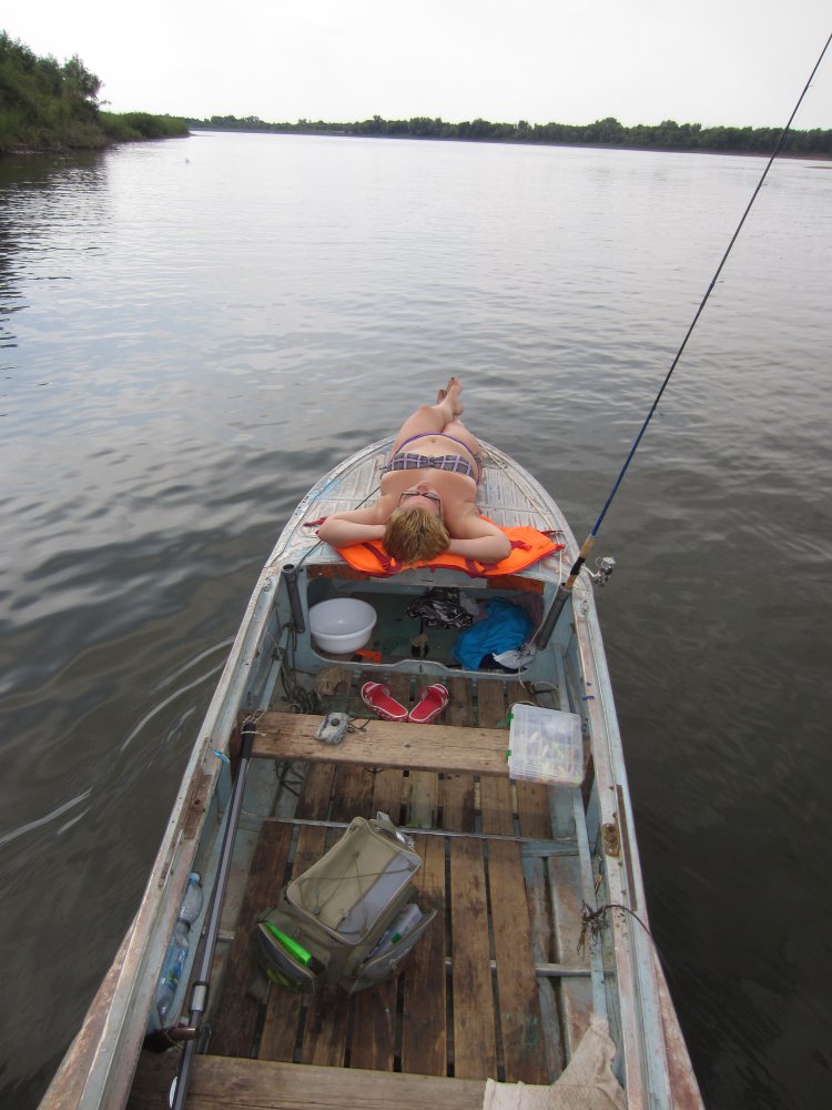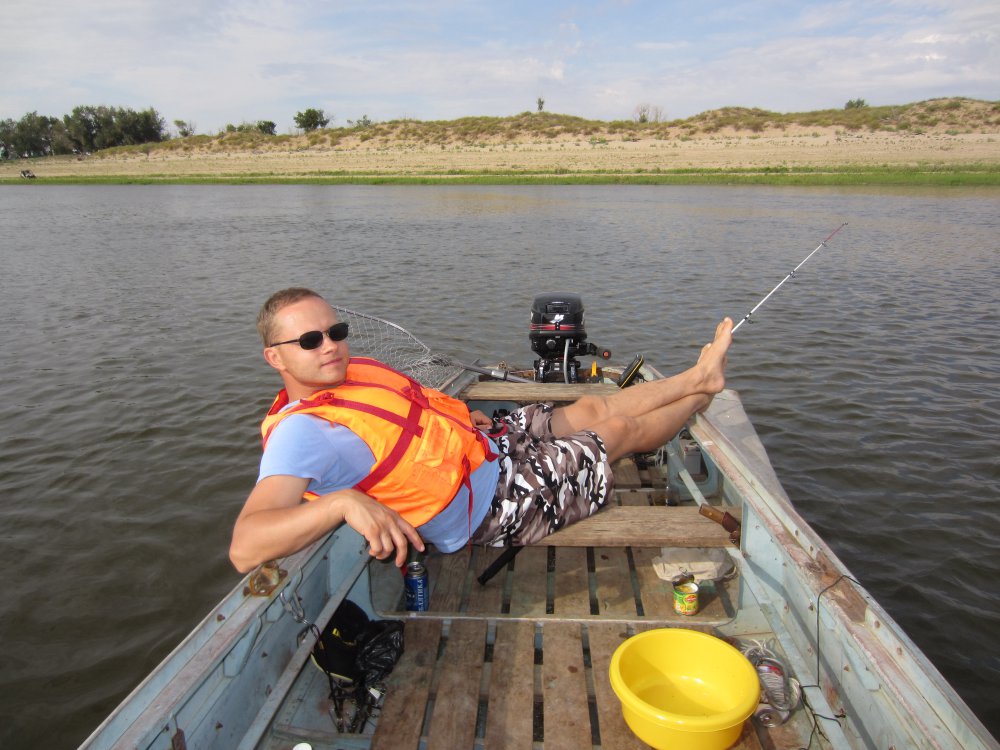 23.08-04.09 Енотаевский р-н Вот и отпуск пролетел быстро так...но перефразируя известного автора - каждая поездка на рыбалку. а тем более на НВ - это маленькая жизнь. Дома сборы, хлопоты, списки, опасения что-нибудь важное не упустить, перетаскивание тюков упихивание неупихуемого в автомобиль....а потом дорога в 1250 км по М6 с бесчисленными обгонами, запраками, с ночевкой под самым Волгоградом в мотеле. а на месте нас уже ждали свои (Борода, Мытищи и Ко). Застолбили нам классное местечко на острове, в чем мы лично убедились с супругой Машей, оглядев окрестности.... Для нас поездка на НВ - это скорее все таки отдых, чем рыбалка. Поэтому хотим тепла, купания. арбузов, дынь, помидоров и прочих радостей жития в палатках на природе. С погодой повезло - не было штормовых ветров и холода. преобладала солнечная погода, с температурой 25-28 в тени. Ночи почти все были теплые и тихие, лишь к сентябрю стали ветреными и прохладными. водичка радовала - от 23 к 20 под конец отдыха. В первый же день видел ужака, схватившего лягуху. Во время фотосессии ужак лягуху отпустил от избытка чувств Щука ловилась исправно, судачкок и бершик тоже присутствовали, но в меньших количествах. На еду хватало. рекорд по щуке поставил наш знакомый дядя Саша - 5600, Хромой занял почетное второе место - 3300. Судака больше 1500 не было. Жереха котлового не было, были одиночки и весьма солидные, Борода взял одного 3-4 кг. Мы им не занимались. Маша, любительница раков, 2 раза варила по ведру (брали у местных). Крупного сазана поймать не удалось - несколько раз вставал на перспективное место, но безрезультатно. В итоге разловил местечко в протоке у упавшего дерева. Сазанчики от 1 до 3 кг,а с ними и лещи и караси, и даже пара язей ловились весело. особенно запомнилось последнее рыбацкое утро - я не успевал на 2 удочки ловить. И хоть сазанчики и не большие, но удовольствие своим упорством доставили мне немалое. Как же неохота было сниматься с места!!! Червяка ели все, на ракушку как-то сложнее было подсечь. На жмых удалось поймать только одного карася. В принципе прав оказался Анатолич - крупного сазана, полагаю вполне на ракушку можно нормально ловить. а чулки, купленные в Никольском так и не опробованы остались . Кормил я конечно, знатно - духан небось под водой стоял сильный. По хищнику понравилось одно место в протоке - коряжистый правый берег и русло 8.5. м. Вот на этом участке на нижней бровке исправно поклевывали судаки с бершами, щука тожде попадала. Один день я там попал в грозу. Так вот перед грозой был хороший клев - сход чего-то приличного и сумасшедшая поклевка: удар на падении 42 гр головки с виброхвостом, подсечка и мощный резкий рывок...сломалась застежка... Есть подозрение на сазана... Ловил под проливным дождем около 3 часов. Интересно было. Запомнится мне эта рыбалка особенно. Много орлов - красивые птицы! Поймали пару густерок на джиг за рот. из курьезов - смс от жены: "Серж, в сумке из под коптилки змея!" а сумка в туалете стояла. Звоню Маше. А она взяла сумку за ручку и оттащила на улицу (очень в туалет хотелось). Змея какая-то пестрая была...М-да еть женщины в русских селеньях. Вообще зверья полно - отец косулю в воде видел, уж у него под капотом поселился, тарантулов двух когда коптил видел тоже. мы с Машей свежие (волчьи?) следы на займище видели. Вообще речка порадовала живостью - рыбка поплескивала активно! Была хорошая 