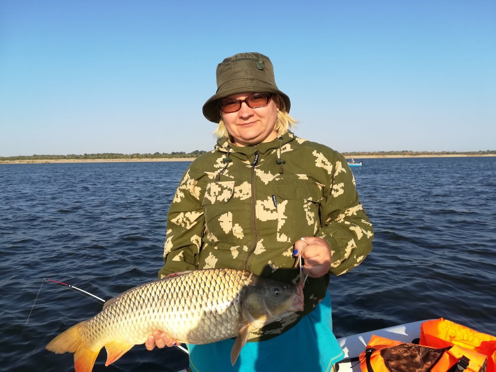 Встал вчера рано - в 3 с чем то утра. 5:45 приступил к ловле. Рыба играла слабо, штиль. В кормушке только немного жмыха. Стою ближе к бровке, течение среднее. Кука и бойл. Пару поклевок на куку не успеваю подсечь. В соседних лодках в целом вроде не очень. Одни потаскивают иногда то ли бель то ли сазанчиков, не разберу. Смещаюсь выше, на полив. Результата нет. В итоге решаю попробовать ловить с прошлогодней точки, где отлично закончил сезон. По ощущениям на бровке много ракушки. Поймал на куку несколько крупных плотвин, воблу, подьязка... Жарко, ветра нет. Но что-то держит на воде. Не готов уезжать. Да и мало дней осталось. 10 утра. На правое поклёвка, точно не помню, вроде закачало кончик. Секу, рыба толкается, фрикцион сильно затянут, стараюсь поднять от дна, чтобы не обрезала об ракушку. Получается довольно легко. Идёт тяжелее обычных сазанов 3-4 кг. Сначала вправо на полив, потом влево на свал. Левое закинуто дальше, риска зацепить нет. Протаскиваю под левым удилищем новую сомовую палку Аэлита 2.4. Ощущаю, что рыба солидная. Выкачиваю, рыба упирается сильнее, идёт вверх по течению. Так шел в прошлом году на этой точке сазан 5.8 кг. Надеваю на голову экшн камеру, которую наконец-то взял с собой на воду и настроил, проверил работу заранее. Ослабляю фрикцион, всё как учили опытные люди и жизнь. Рыба поддаётся с боем, периодически трещит фрикцион. Палка отлично работает! Подходит ближе. Вот уже виден верхний вертлюг снэк-лидера. Рыба давит вглубь, треск фрикциона. Проверяю пишет ли камера. Работает! Надеваю, продолжаю качать. Поднимаю, сквозь блики солнца вижу большое тело с крупной чешуёй, хвост лопатой. Сазан крупный... а может - амур??? Понимаю вот он, трофей, которого так ждал, который мне от души желали взять наконец единомышленники с форума и близкие. Рыба на вид однозначно больше десятки. Уходит вниз, под лодку, водит в стороны. Не тороплюсь...Подвожу наверх- амур!!! АМУР, о котором давно мечтал и понимал, что поймать его маловероятно! Вот это подфартило. И всё это ещё снимаю на видео!....Решаю сняться с якоря. Отвязываюсь, потянув за ненагруженный конец, выбрасываю пятилитровку с фалом за борт. Кладу удилище на лавку, прижимаю ногой, быстро выматываю второе. Сплавляюсь...Вываживание без течения - другое дело. Рыба упирается, но в союзниках нет течения. Вывожу наверх, он устал, лежит вдоль борта. Беру подсачек, помню про рассказы про рывок амура перед подсачеком. Подвожу с головы, рыба смирная, на две трети входит в подсачек и...Есть! Он мой!... Кладу в лодку. Эмоции и холодный расчет, радость поимки и усталость. Вот он, подарок Волги-матушки, который я смог принять! Долго не получается закуканить. Вспоминаю про камеру. Нажимаю на паузу. Рыба на вид под пятнашку. Как мои дети младшие по весу. Я все шутил - поймать бы сазана весом как дети... Рыбу за борт, даю оклематься. Вынимаю и на моторе возвращаюсь на точку. Соседи сохраняют невозмутимое спокойствие. Прокручиваю ролик записи -все записалось, немного камера вверх смотрит, но не критично. Двадцать четыре минуты вроде запись. Выключаю её и продолжаю ловлю, хотя понимаю, что река мне все уже выдала на сегодня. Благодарю её и немного грущу, что это уже в прошлом. Хочется поделиться радостью с близкими людьми, рыбаками- единомышленниками. Отбываю номер до 11 утра и в лагерь с остановкой дать рыбе оклематься. Ну а дальше радость поимки, по