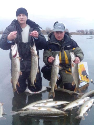 Сегодня рыбалка получилась не простая)))вечером выпал снег и ночью(+5)растаял, бросили машину(решили не рисковать и дальше не зарываться) и последние 4 км пришлось идти пешком к реке,туда шли пустые ,пешню и всякие мелочи можно не считать,но по безумной грязи(я думаю все понимают что это такое)))Вчера вечером поставили 50 поставушек,сегодня много было покусанной,несколько перетертых капроновых лесок ...Но рыбалка порадовала.Было поймано 12 шт,общим весом 26кг.Предстояло идти назад с рыбой, поставушками и другими причендалами)))...Но вот мы уже дома и в итоге все были довольны,усталость забылась,а приятные впечатления остались.Сейчас у нас +1,но ночью обещают долгожданные морозы(-18)