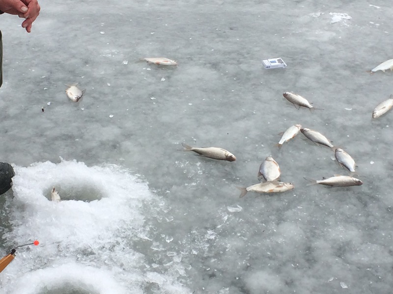 Приходящая водичка вносит свои неудобства и на лёд приходиться выходить по доскам, так как по закраинам вдоль берега образовались намоины, а процесс рыбалки по-прежнему идёт полным ходом!
