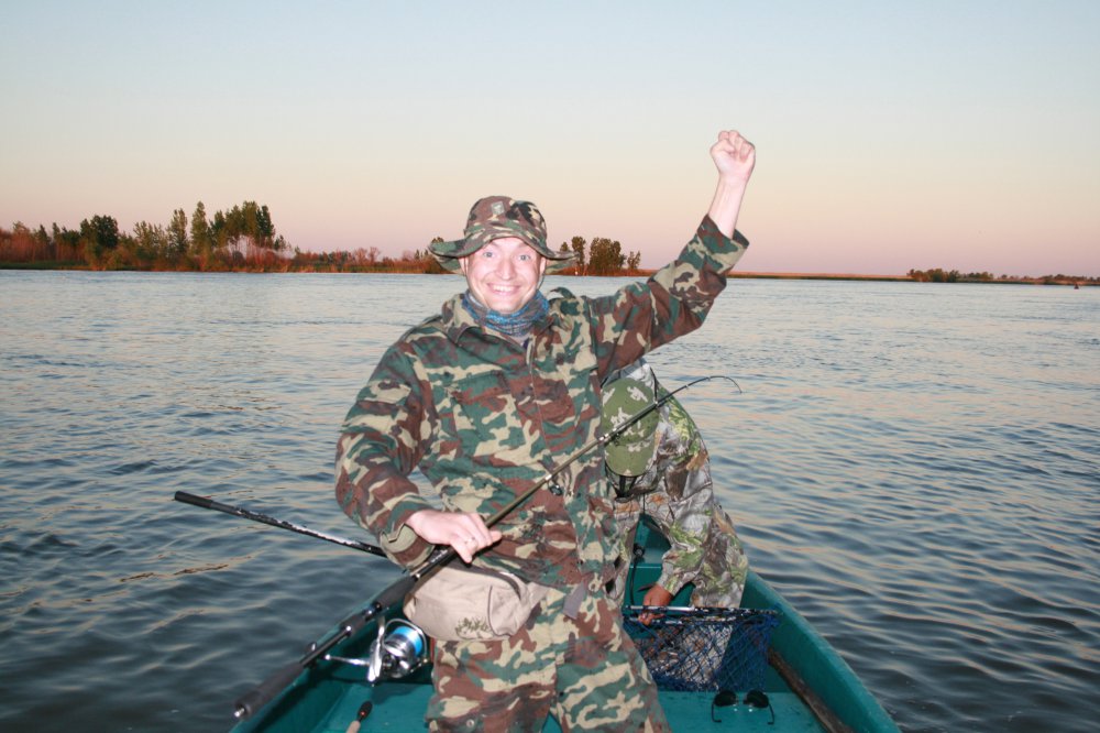 Первый день в Замьянах. Схема, которую нам дали в Москве, оказалась не совсем правильной. Дорогу залил паводок. Однако, по звонку нас очень оперативно встретили и проводили до базы , по резервному пути. На базе нас ждал обед, и два катера для вечерней рыбалки. Перед рыбалкой познакомились с 77-м, который дал нам рекомендации. Увы..массовый судак видимо тогда еще не пошел. Экипаж из Реутова все таки словил зачетного судака, а мы решили покидать у входа в протоку, по моему она называется "мартышка" или как то так. Изучив вопрос позднее я выяснил, что "мартышка" по местному это не обезьяна, а крупная чайка:) Тем более, я заметил, что у берега брызнул мелкий малек. Вешаю универсальный кастмастер, мой любимый серебристо-зеленый. Пара забросов..БАЦ.....спиннинг у меня начали активно отнимать из под воды....А ловил я легким Графитлидером ТИРО 4-22 гр. тестом. Я кричу напарнику - подсак давай, что-то большое на блесне. Он так тихо помолчал...а его и нет. Мля...единственный подсак достался другому экипажу. Делать нечего... Утомляю рыбу подвожу, напарник удачно хватает ее жабры..и 3-х килограммовый жерех в лодке. 77-й проплывая мимо с приятелем, прокомментировал поимку скромной похвалой - "херня":))))) Ну для кого как, я ж все понимаю, но жерехов до этого не ловил вообще, и для меня это ВАЩЕ почти рыба из рассказа "Старик и море":). Короче рыбалка удалась прям с первого дня. 77-я база понравилась. И обед был шикарным, и гостеприимство хозяев. Отличное место для семейного отдыха. Но это еще не раскаты, не дельта Волги..а все мысли там:)