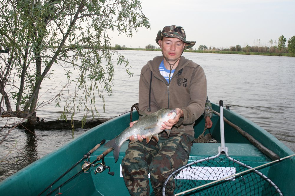 Особенно конечно впечатлил жерех. Бороться с крупным жерехом одно удовольствие. Мы разработали свою технологию их ловли. Сначала мы сплавлялись по течению вдоль коряжника, забрасывая приманки вплотную к веткам, причем, чем точнее и ближе к веткам заброс, тем больше шансов на поимку. Руку набили к концу поездки так, что почти всегда приводняли блесну в 5-10 см от кустов. Потом определили место, где удары случались чаще всего, привязались к коряге и стали ловить стационарно. Однажды пожаловал рыбнадзор. Подплыли, немного расстроились тем, что мы ловим не сеткой, потребовали показать улов. Открыли крышку сиденья.... Нормальный улов ..вздохнул с какой-то скрытой тоской охранник. :) Посоветовал нам попробовать покидать на другом берегу, у аншлагов заказника "Теплушка". Надо сказать, что там было тоже очень интересно, но не из-за коряжника, а из особенностей течения. Струи воды шли прямо по поверхности, образуя водовороты, завихрения.... Но в общей массе жерех там был меньше.