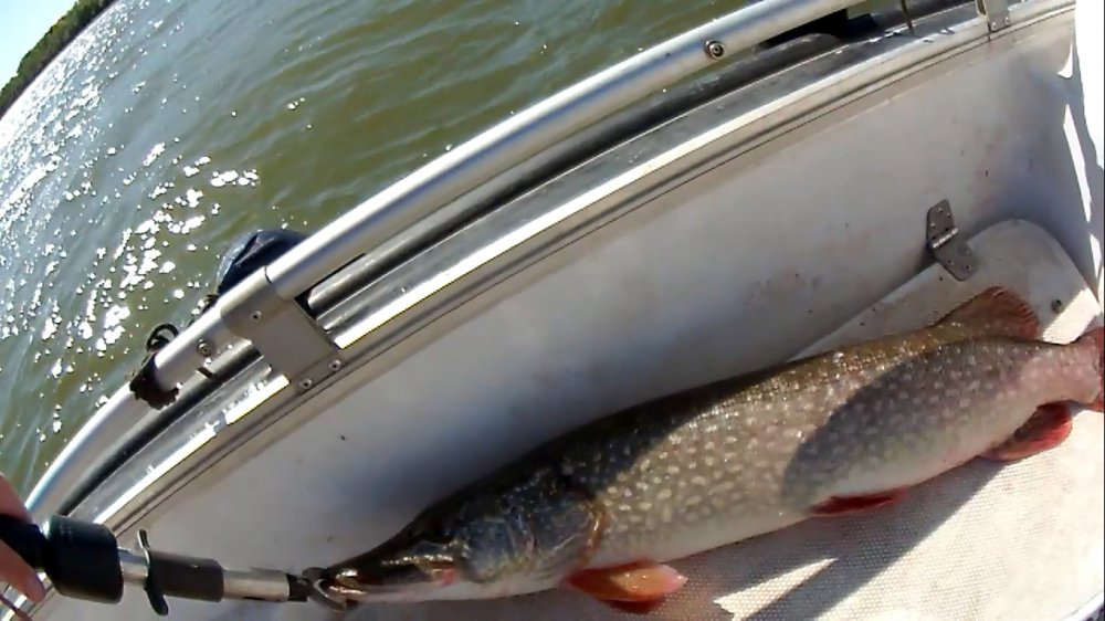 Вести из Селитренного. Ну вот, в очередной раз порадовала зачётная "мамка" (щука) на 6120кг!!! Ветра чуток притихли и я решил пройтись по Митинке с парашютом до Александровской ямы. Сама яма не впечатлила, то есть, полная бели, а вот хищник почему-то на самой яме бастует... Ну конечно же, кроме мелкой травянки и "пиписочного морданова" по закраинам ямы вдоль травы. А вот ниже ямы, на ракушечнике влетела на поролон "котлеточная мамка" Погодка у нас стоит пока ещё тёплая, водичка потихоньку холодает, так как ночами уже прохладно! Из этого следует, что с похолоданием воды, хищник становится поактивнее и надеюсь, что скоро прочувствую те самые поклёвки - "как кувалдой" Также пробовал ловить и на съедобную резину, но поролон работает лучше. Да и ещё не маловажный факт, практически из каждого пойманного хищника изо рта уже в лодке вываливается мелкая и плоская размером с мизинец рыбёшка похожая на тюльку..... Может поэтому хищник предпочитает поролон, а не резину?!
