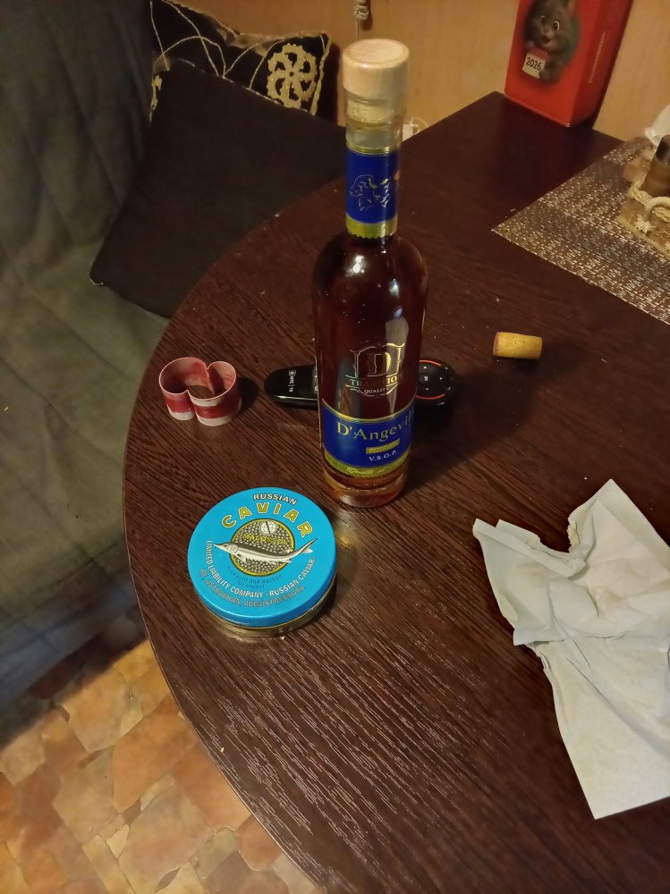 ну чë, вчера в аакурат апосля выселения кудельманихи выплатили премию за год. Невероятнейшая!!!! Пришлось брать французский каньяк и чорную икру (250 грамей). ну, за пятницу!
