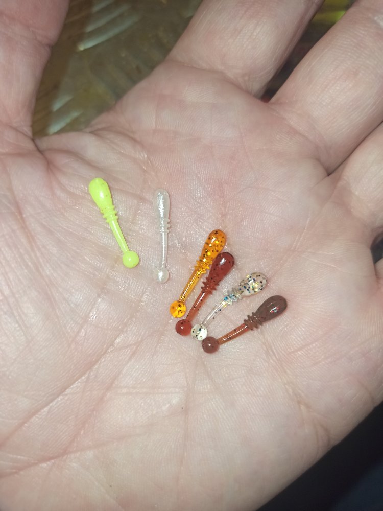 Вот мои спиннинговые штучки на фоне знаменитых Угличских мормых. Надо силикон подрезать, крупновато получается.