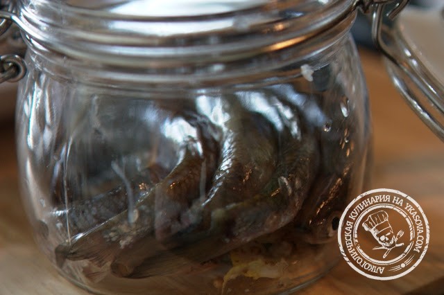 Уклейка пряного пасола. (из цыкла: отличные закуски из повседневной жизни синяков). Так вот что такое пряная уклейка? Я писал об этом выше.. и не будем ипать моск,а просто и быстро засолим свежайшую рыбу. Но! Есть интересное но. Если вы хотите чтобы при поедании рыбы филе отделялось от костей и хребта легко, то просто заморозьте рыбу на сутки. 1.Для этого возьмем свежую уклейку, лимон,соль и специи... Из специй особо никуя не надо, кроме как: собственно лимона, который в большей части заменяет уксус, соль, сахар, ломатый лавровый лист, душистый перец горошек, немного красного уксуса, зерна кориандра, гвоздика и тмин... 2.Кладем в банку первый слой специй...и потом уклейку. Как и со шпротами, рыбу не чистим и не потрошым вообще. 3. И так слой за слоем… 4. И в конце засыпаем специями... 5. Вот так выглядит засолотая банка уклейки. 6. Через пару дней открываем банку, вынимаем пробки, нюхаем и смотрим… рассол и сок есть и это прекрасно! Переворачиваем банку и еще на сутки в холодильник… 7. И вот через трое суток..(не меньше никуя блять) достаем пахучую, запотевшую баночку из холодильника... Взбалтываем и окуеваем потихоньку... от пестатого запаха и вероятно вкуса 8. Срочно варим молодую картошку, на огороде рвем молодой лук, ломаем краюху хлеба, отварную картошку мнем вилкой и сверху кладем немного коровьего масла.. с уклейки снимаем кожу… наливаем небольшую рюмку холодной вотки и…. и едим, наслаждаясь вкусом пряной речной рыбы, правильно просоленной и выдержанной... Фотография для правильного слюноотделения и всеобьемлещего восприятия жизни... Вот так и живем товарищи, переминаясь с хлеба на соль и иногда на вотку... Ловите и солите рыбу, ешьте вкусно и вообще будьте щастливы…