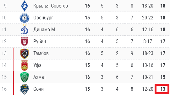 Сочи ноль 0 конечно,собрались пердуны неудачники со всей лиги досидеть,Кудряшов даже -1,а не ноль,но выигрывают:crazy::crazy::D