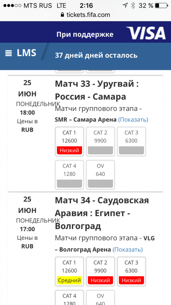 На Бразилию-Сербию и на Аргентину-Исландию ...билетов на Спартак - не было доступно никаких :(
