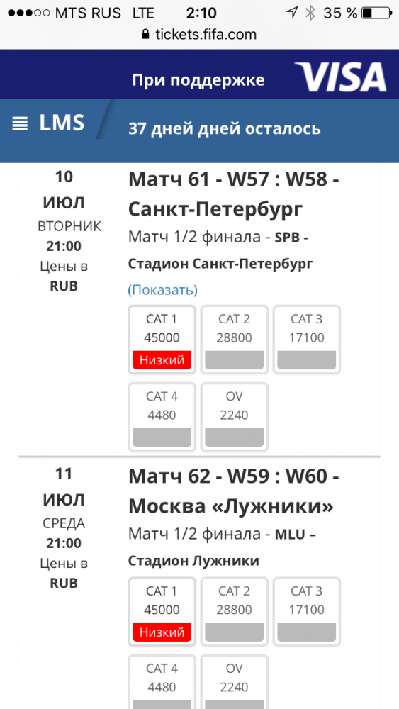 700-й, сегодня же была ночь свободной продажи билетов от которых отказались организации близкие ФИФА, что нибудь удалось купить?