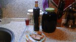 А вот фото дома : рюмка , литрушка , в 3-х литровой клюковка продолжает еще настаиваться , правда с сахаром чуть переборщил , сладковата <:-( :) .