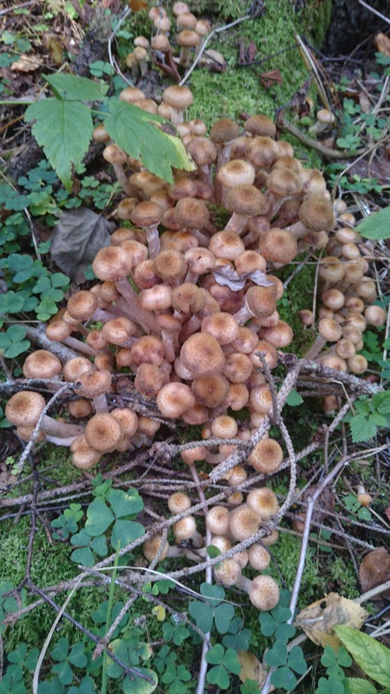 Приехал на дачу после обеда. В 17-00 вошёл в лес, в 18-00 вышел. Опят нормально набрал. Много старых, а между ними новые прорастают.... Не далеко от Вереи.