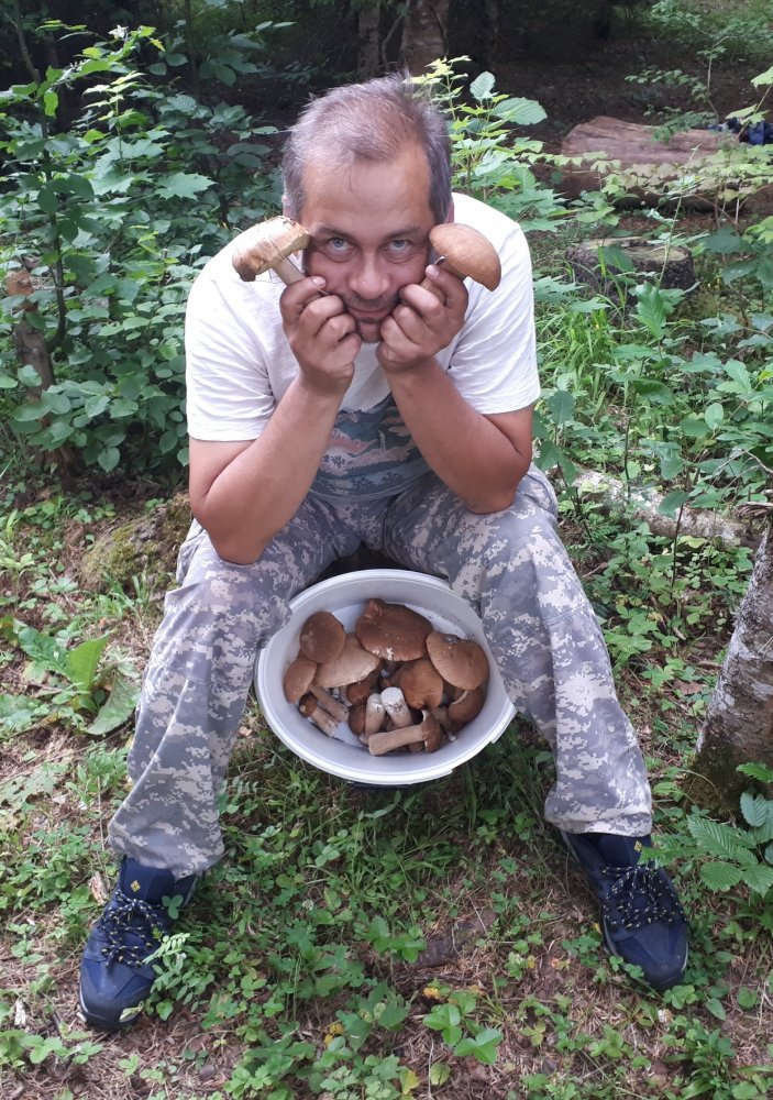 Я сегодня опять норму выполнил. Пол ведра. Уже 3тий день так. Не больше, не меньше. И лисичек малость. Кажется, белые сходят. Но появилось много серорозового мухомора. Говорят он вкусный и съедобный. Но я чет боюся.