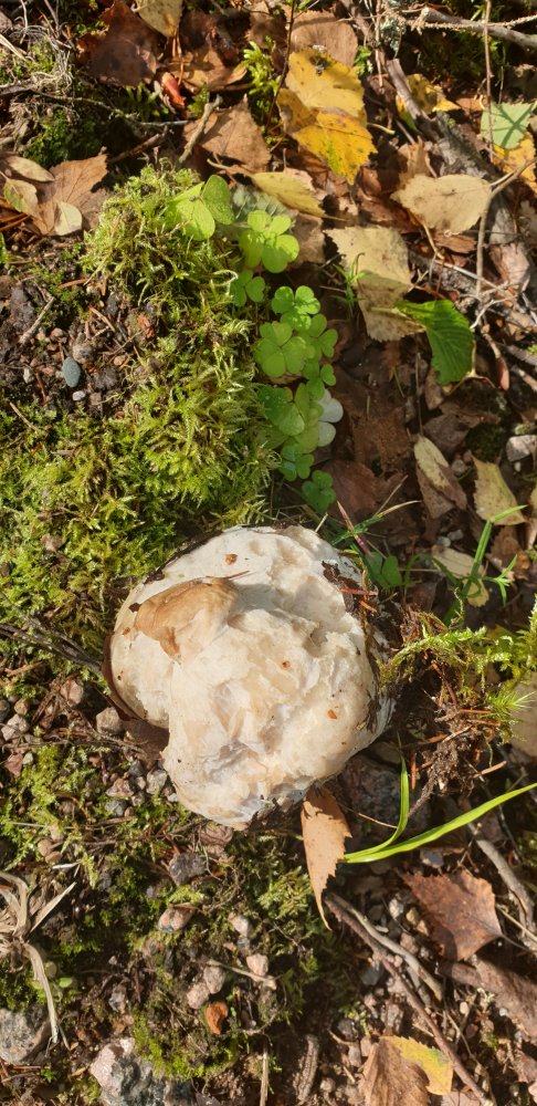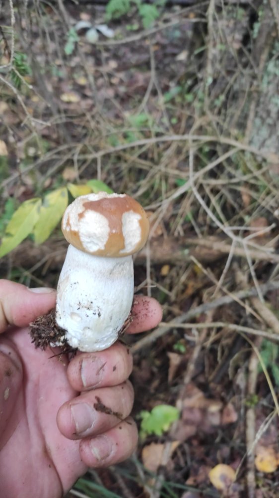 Сьездил за грибом...пока остатки урагана, который без света полФинки оставил...остаются Смешной белый...ножка в кулак, шляпка 3 см