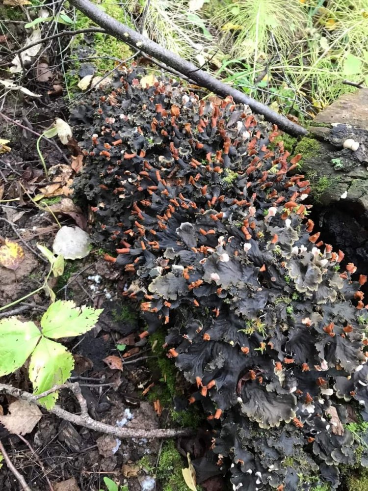 А, тебе Илья Иванович, двойка! Я в прошлом году писала, что это не гриб, а лишайник. Цветёт. Называется Пельтигера собачья (Peltigera canina).