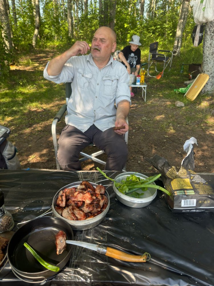 Вот зачем ты это сказал? )) Я же спросил. Она мне вывалила в мозг штук двадцать рецептов только из рыбы, не считая всего остального. Всё-равно, ничего не запомнил. Это надо отдельную ветку заводить на форуме(хотя, может и есть такая - лениво рыться) - "походная высокая кухня" и писать под диктовку. В пампасах расстегаи и жульен было бы прикольно. А то всё уха да копчёная рыба. А то и того хуже - макароны с тушёнкой и супы из пакетов )) Проблема в том, что она со мной ездит только зимой, а сам я такого наготовлю - всех отравлю и сам сдохну в кустах )) Когда ездила, котлетки были, рыбка запечённая так и сяк, пирожки, оладушки и прочие вкусности... Старенькие фотки. Я без бороды ещё и лохматый.