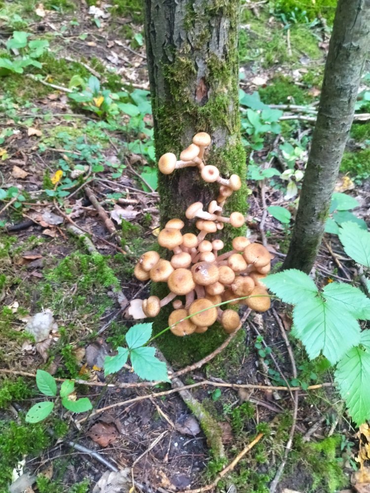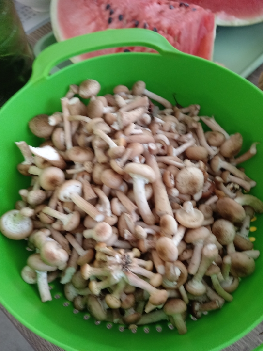 ,, Товагрищи, пгромедление смегрти подобно..."( В.И.Ленин). ,,Кто не пойдёт сегодня в лес, грибы зимою не поест" ( Я). Если в субботу трёхдневные опятные кнопки, ни в какую не хотели выполнять свою задачу по воспроизведению себе подобных ( поставленную всем, сами знаете кем), для чего им надо было непременно расти. То сегодня совсем другой коленкор. Всего то один жаркий день и ночь, но некоторые успели вымахать до сантиметров 20 - ти. Шляпы пока ещё не раскрыты но такими темпами, до конца недели волна, пожалуй завершится. Походил часа два, больше не выдержал, жарко, завтра ещё зайду, благо рядом с дачей гриба, имхо много. Фоток из леса не будет, телефон, падла даже не перезагружается, сплошную пургу гонит, мож вирус какой то подхватил ... небось клещ, ссука.. Вот матушка перебирает по своей инициативе уж очень грибы любила собирать теперь уж увы 88, но хоть таким образом соприкоснуться Короче айда все в лес.