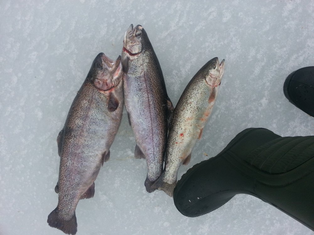 В общем на флажки поклёвывало,но в разы реже чем в прошлый раз. На удильник опять не важно. Двух крупненьких поймал на нимфу, одну (кг) на жерлицу и одну на duo. Вильямсы с саурусами промолчали. У Андреича фора утащила удочку с басдеем - оставил без присмотра <:-(