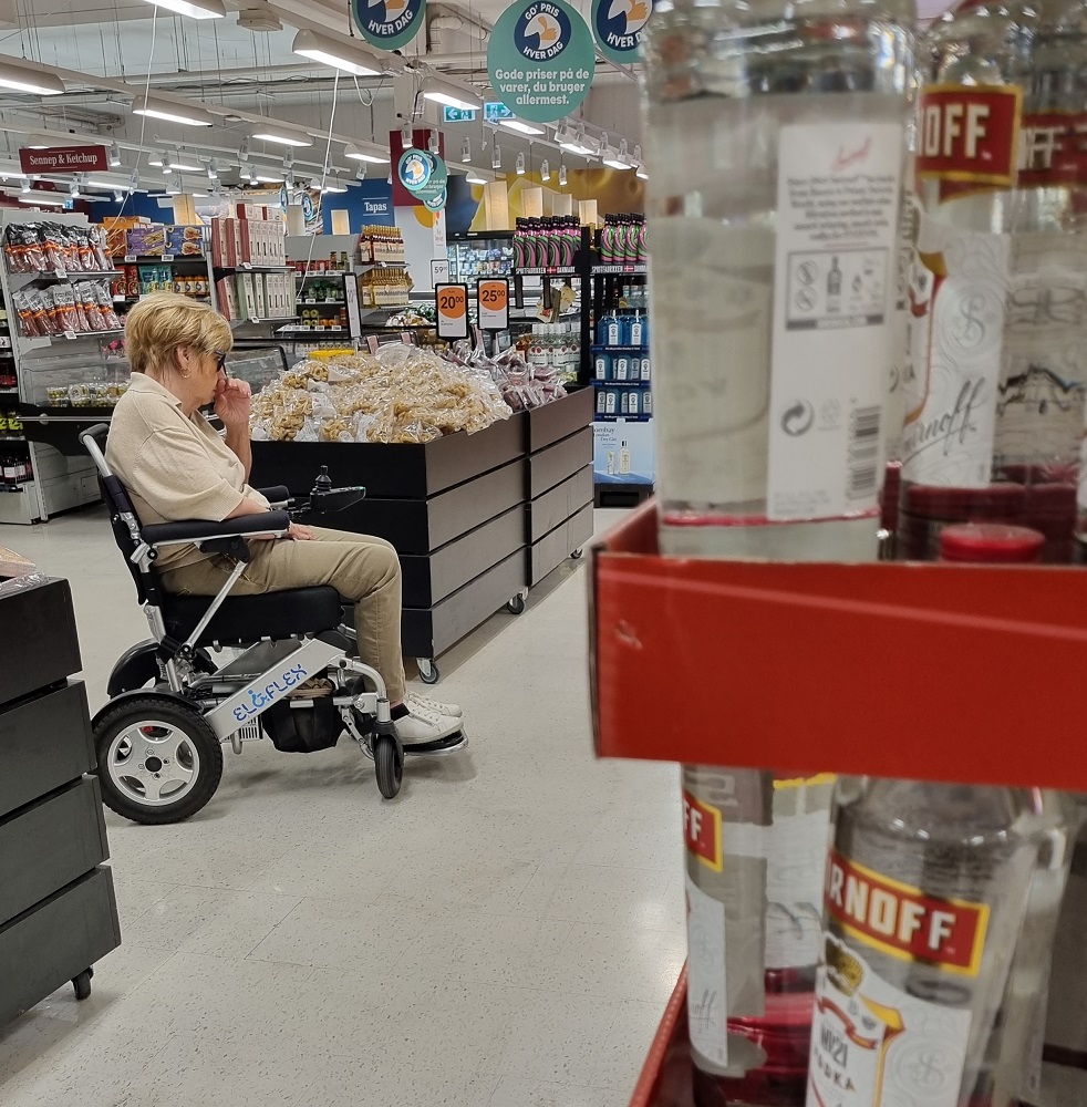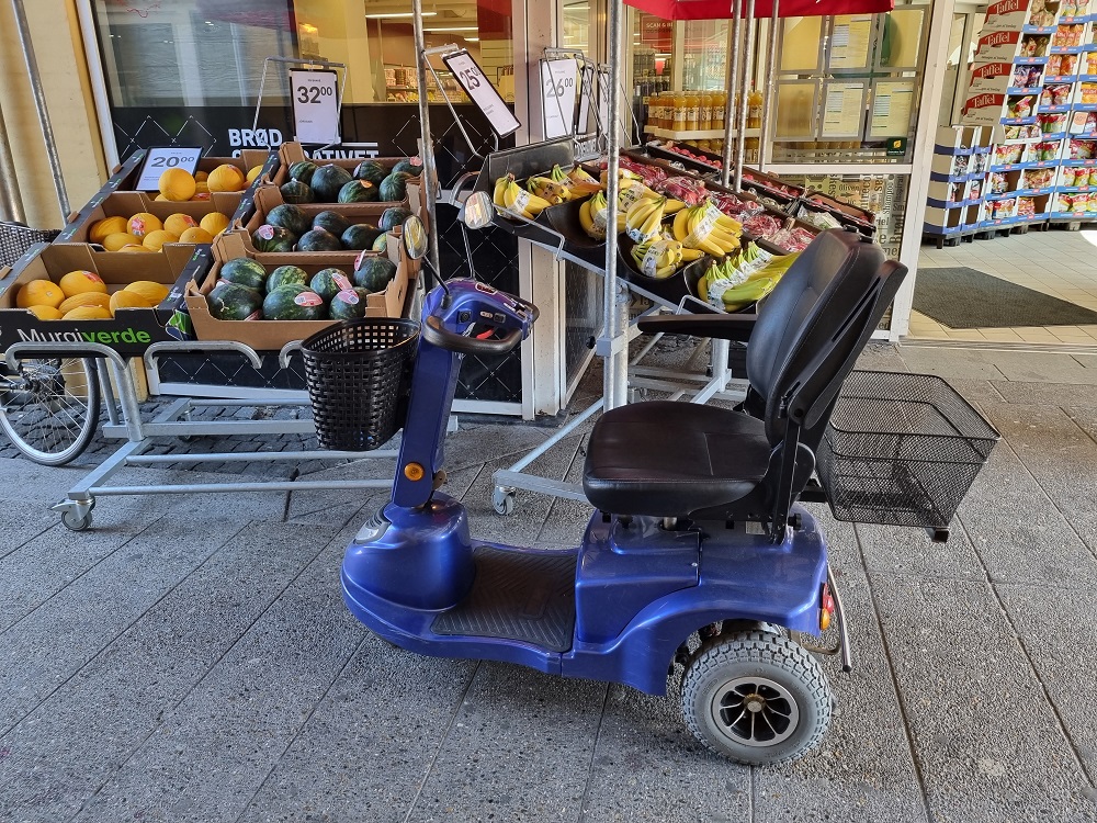 Заскочил в супермаркет, вот на таком аппарате подъезжают к магазину местные пенсионерки, а далее идут за покупками пешком. Но есть и такие которые и пешком уже не могут, тогда они прямо ездят на таких штуках в магазине. Офигел от консервированного гуся, 1250 гр одна банка и 1350 гр другая банка. Даже водка продается, не говоря уже о других бренди, виски и пр.алкоголе. В Швеции такое только в спец. Магазинах. Вообще датчане отличаются от шведов, язык более грубый, более «громкие», если слышен смех и громкие крики на 100% это датчане.