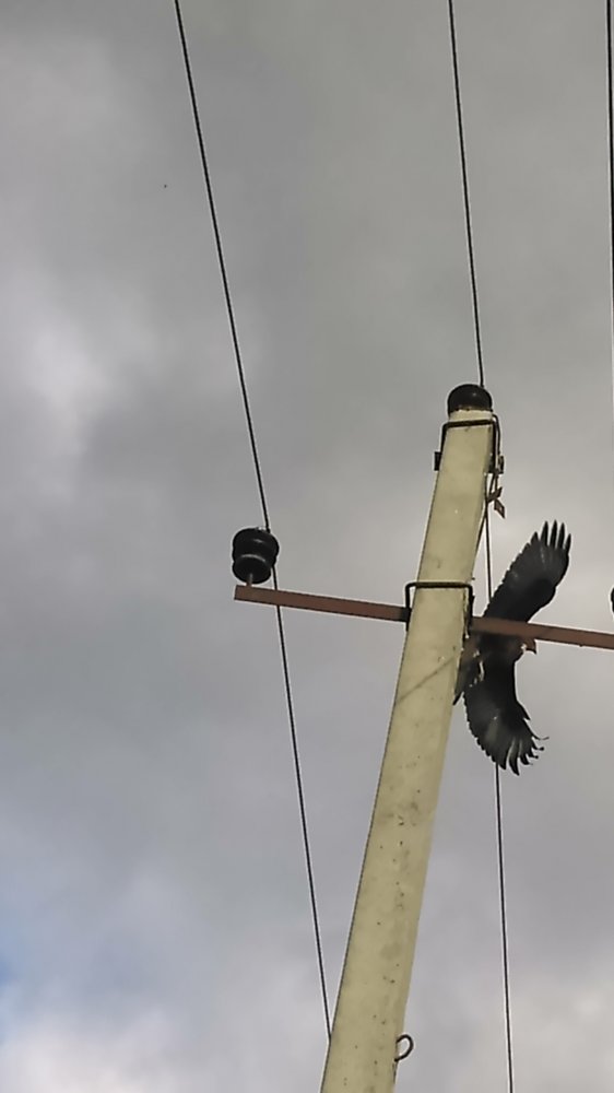 В деревню дорога идет вдоль столбов высокого напряжения, так вот уже несколько раз ястреб сопровождает едущее авто , перелетая со столба на столб - проявляя любопытство , а может и соревнуется с машиной :) .