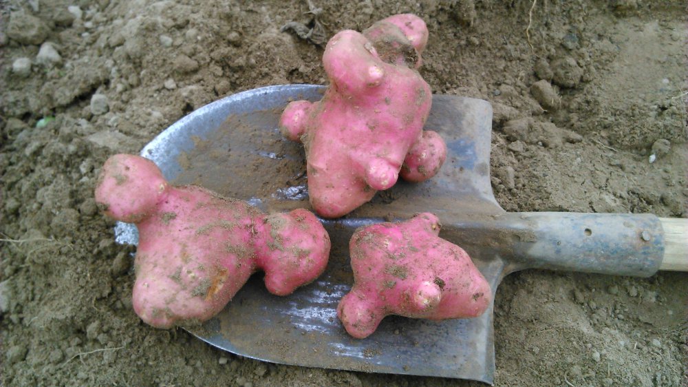 Сегодня копал картошку , попались вот такие клубни . Луна сейчас выглядит необычно - яркая и большая !